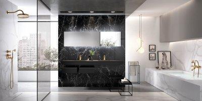 Márvány hatású dekorfal a fürdőben