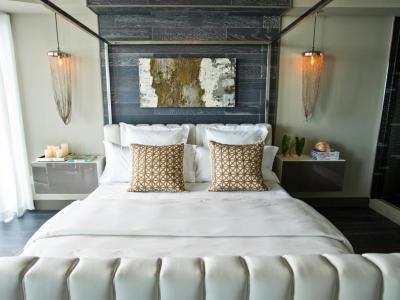 Modern hálószoba design lámpával
