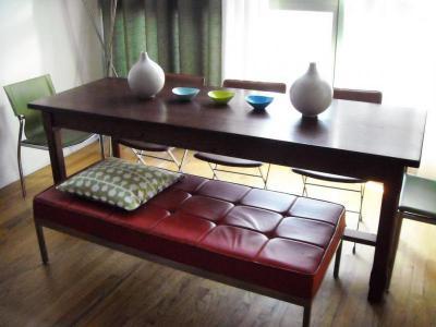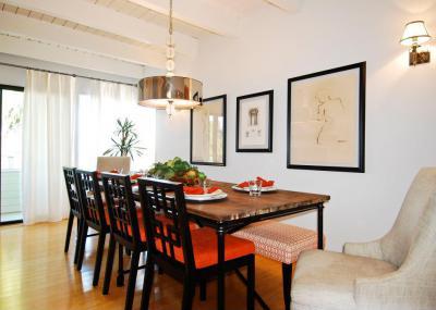 Eklektikus étkező faasztallal