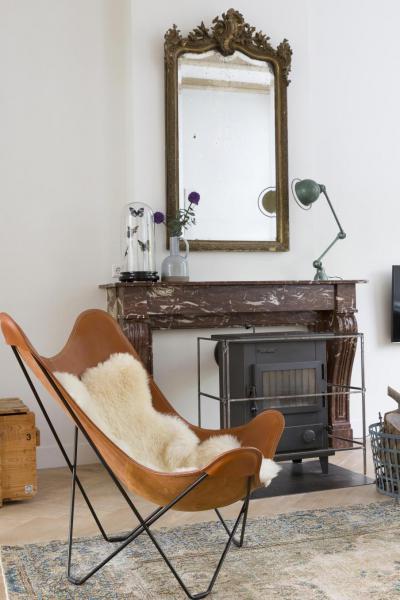 Pihenő kandallóval és pillangó székkel