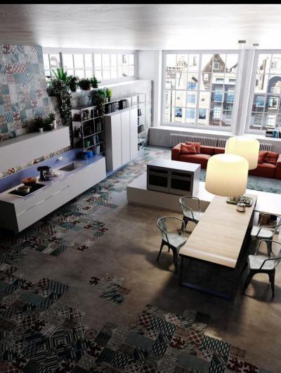 Klasszikus konyha cementlap burkolattal