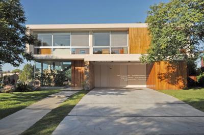 Modern lakóház fa homlokzatburkolattal