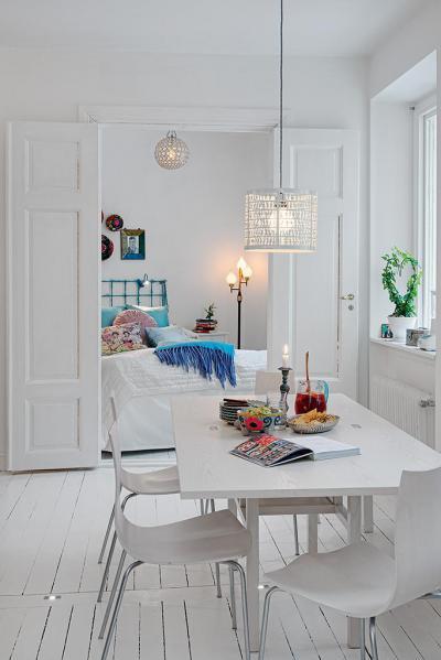 Fehér étkező gyönyörű lámpával