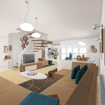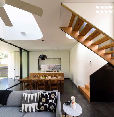 Lépcső a nappali és a konyha közé
