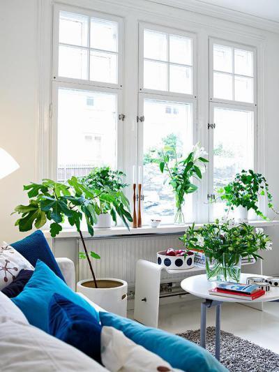 Fehér nappali részlet kékkel