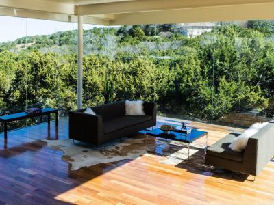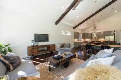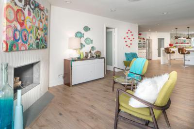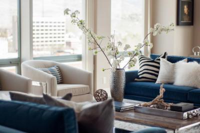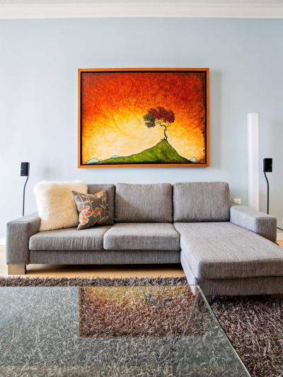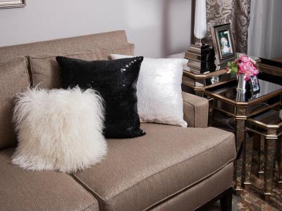 Eklektikus nappali bőrkanapéval és díszpárnákkal