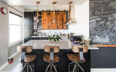 Fekete-fehér konyha fával