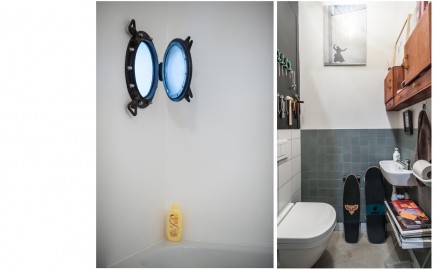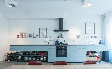 A hollandok kreativitását mutatja ez a régi garázsból kialakított 120 négyzetméteres két gyerekes családi otthon, Amszterdam keleti részén. A tulajdonos belsőépítész, így saját maga tervezte és alakította ki a lakás tereit, meghagyva a garázs építészeti és ipari elemeit, a nagy belmagasságot és az acélkeretes ajtót, ablakokat, ehhez alakítva a lakás modern, ipari stílusát, mint a műgyanta padló, ipari stílusú fiókos szekrények, régi iskolapad. Praktikus elrendezés, nagy élet és játéktér a gyerekeknek, egy igazán egyedi hangulatú otthon.