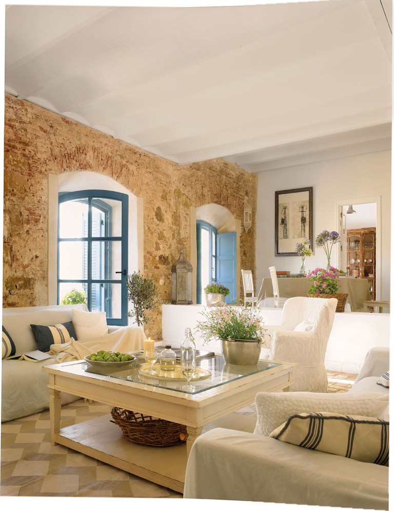 Nálam ez a ház, szerelem első látásra! Nem tudom Ti hogy vagytok vele, de minden zuga tökéletes, meleg és otthonos. Sok fehér jellemzi, amelyhez csodásan passzol a nyers tégla és terméskő látványa, meleg színe, anyaga. No és persze a kékre festett fa nyílászárók.