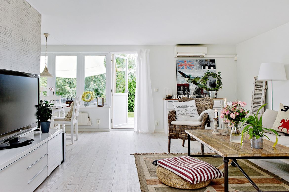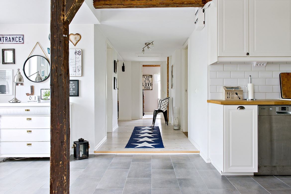 Modern bútorok keverve régi, kopott dolgokkal, kiegészítve indusztriális tárgyakkal és elkészül egy izgalmas, hangulatos otthon. Alap most is a fehér, mert remekül érvényesül mellette minden, ami fa, tehát a látszógerendák, a fém székek és a kék szőnyegek.