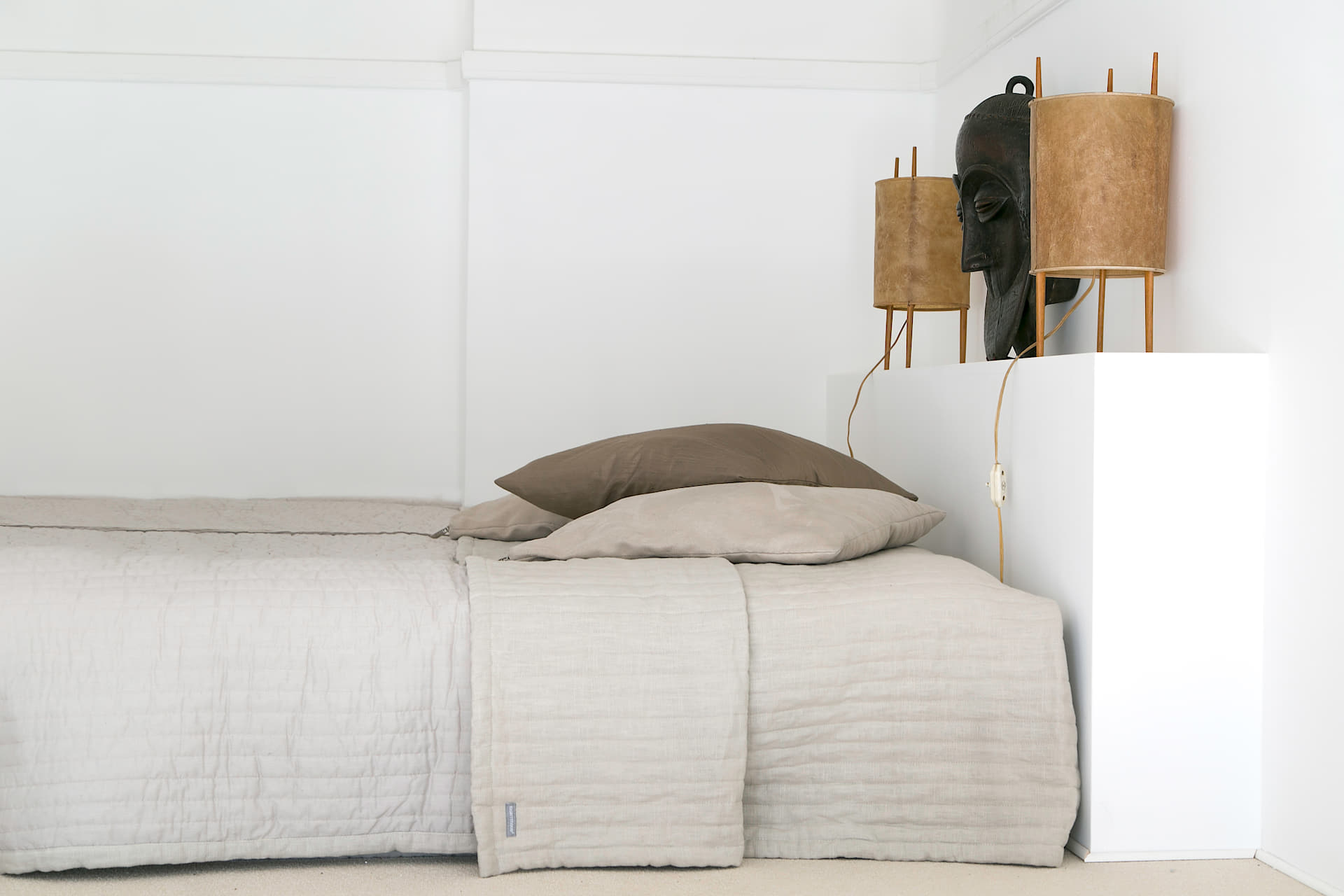 E lakás hölgy lakója nem csupán a könyveket szereti, hanem a minőségi, design bútorokat is. A gondosan összeválogatott, szebbnél-szebb design darabok tanúskodnak erről. A háló egy kis galérián található, nagyon nőies ez is, mint a lakás többi része. Igényes, visszafogottan izgalmas otthon.