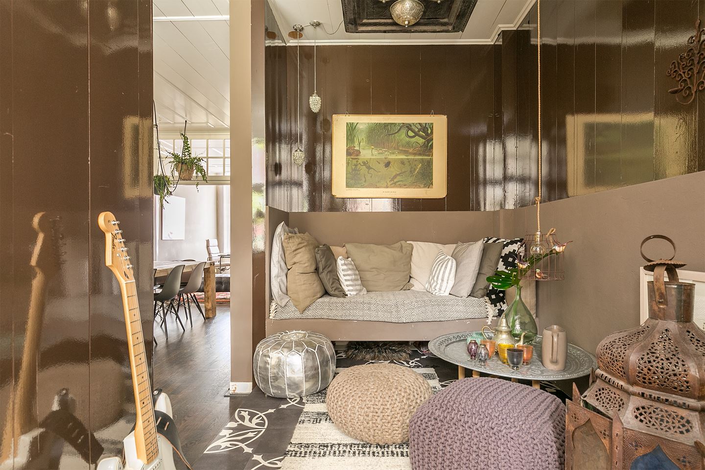 Igen! Legyünk nagyon egyediek! Merjünk azok lenni! Mint ebben a lakásban, ahol nagyszerű kiegészítők sorakoznak fel és bátran párosítják a különböző stílusok elemeit. Pop-art Monroe kép a dolgozóban, ahol egy nagy fém szekrény (ipari stílus) és egy öreg bőr ottomán jól megfér egymással. Az étkező csodás fa asztalát modern műanyag székek veszik körül és a lámpákon kívül növények is alálógnak a mennyezetről. Hát...valahogy így kell ezt!