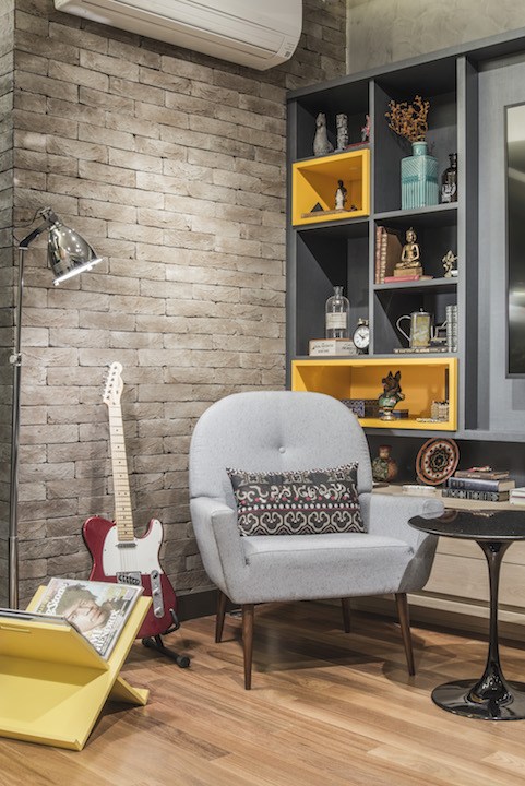 Vagány, trendi, fiatalos és nagyon dizájnos városi lakás. A nyers téglafal és átellenben a betonhatású fal az indusztriális stílusra enged következtetni. A konyhai alsószekrény nappali felőli oldala menő, geometrikus burkolatot élvez. A sok, nagy ablak pedig világosságot kölcsönöz a lakásnak.