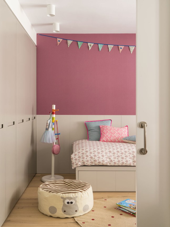 Az eredeti állapot: sötét, már-már nyomasztó helyiségek ebben a 120 négyzetméteres, remek adottságokkal rendelkező, barcelonai lakásban. Ami történt: a statikailag fontos falak kivételével a határolók elbontása, térelválasztás szimbolikusan, bútorokkal, szőnyegekkel, egyedileg készített térelválasztóval, álmennyezettel. Az ily módon egybefolyó tereket átjárja a természetes fény és végre-valahára érvényesülhetnek a könnyed, pasztell színek: púder rózsaszín, füst szürke, menta, natúr nyír és fenyő. A 70-es évek stílusát képviselő bútorzat jó választás ebbe a környezetbe, könnyedséget, bohém hangulatot varázsol a régi falak közé.