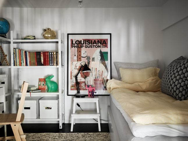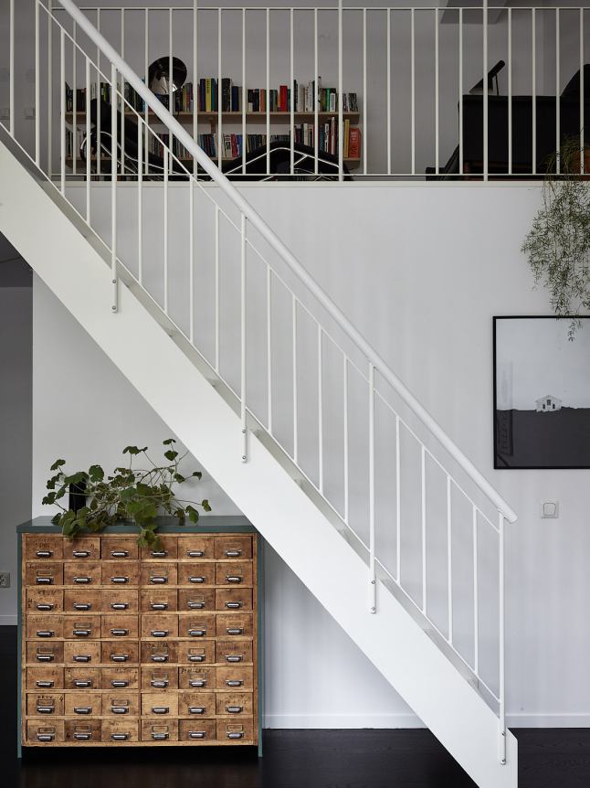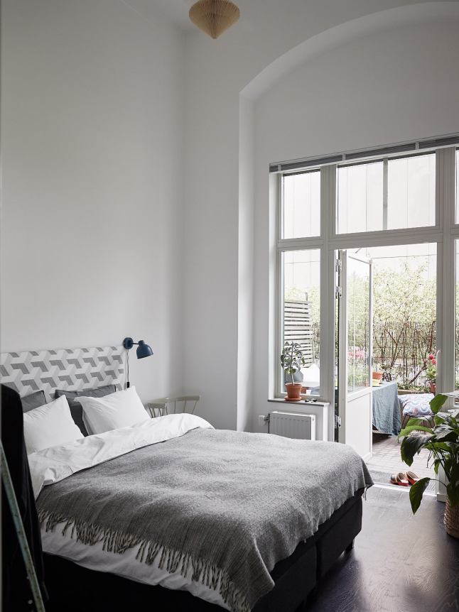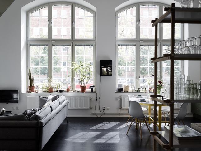 Találkozik az indusztriál a skandináv stílussal ebben az otthonban. Uralja a szürke és a mélyebb tónusú színek, mint például a konyhabútor zöldje. De, beszúrnak imitt-amott egy élénk kis színfoltot, hogy a szem ne lustuljon el, így a sárga asztalláb, mely egyébként csodás márványlapot tart. A dolgozóban egy sárga szék, a gyerekszobában sárga ágynemű. Kellemes terasz is tartozik az otthonhoz, itt is, mint a lakásban mindenütt puha, kellemes textilekkel teszik még otthonosabbá a környezetet.