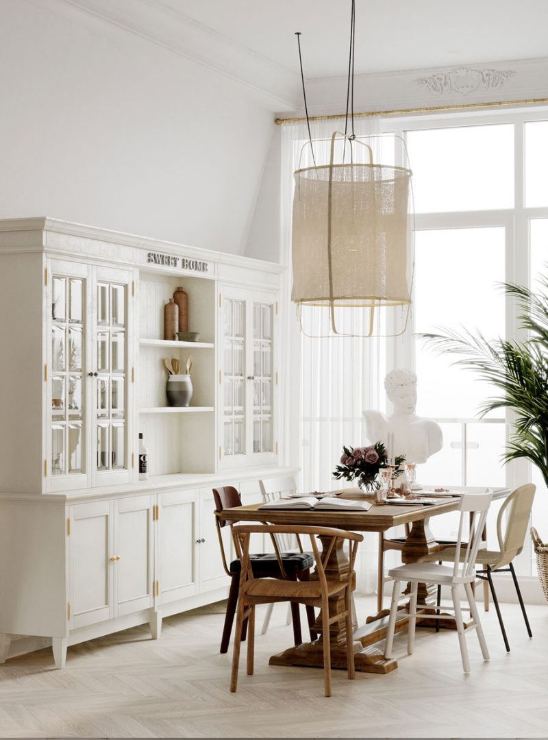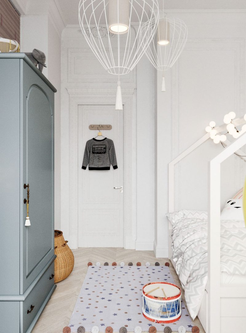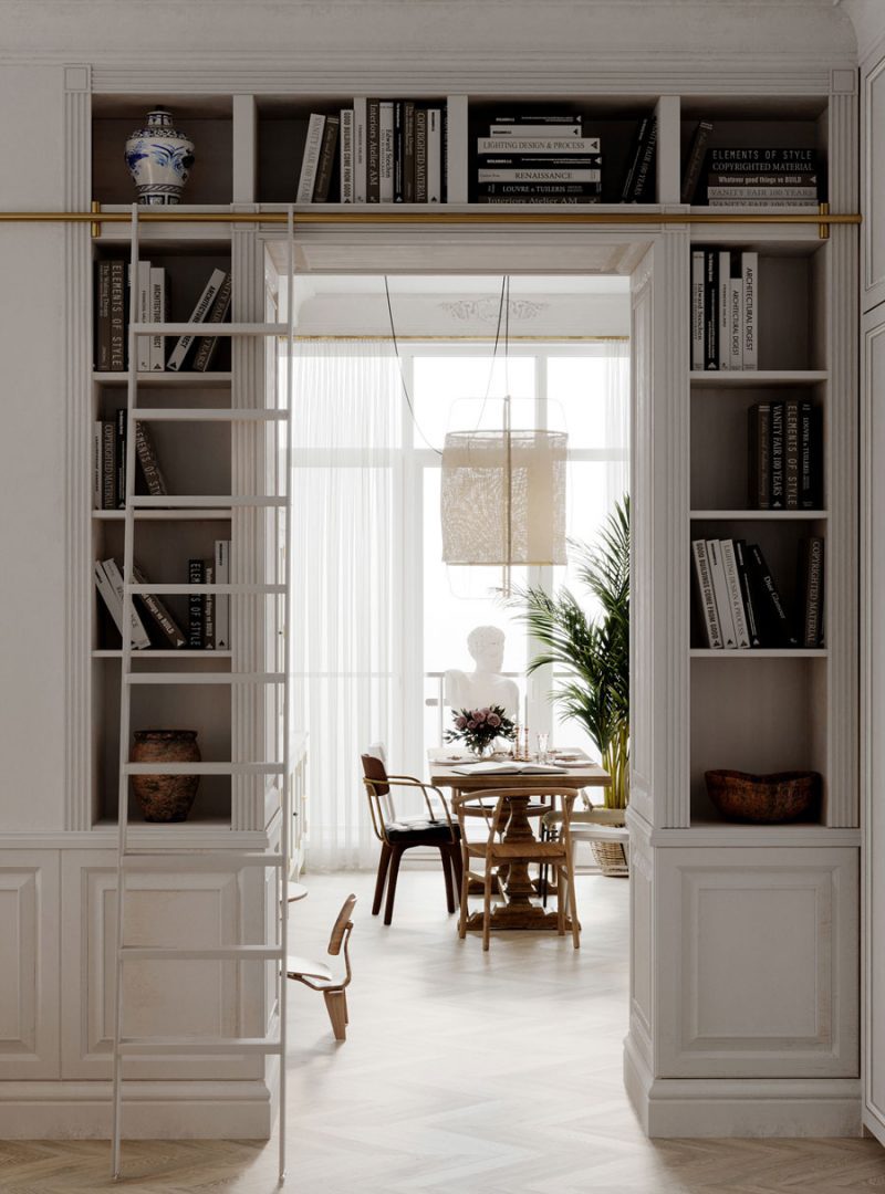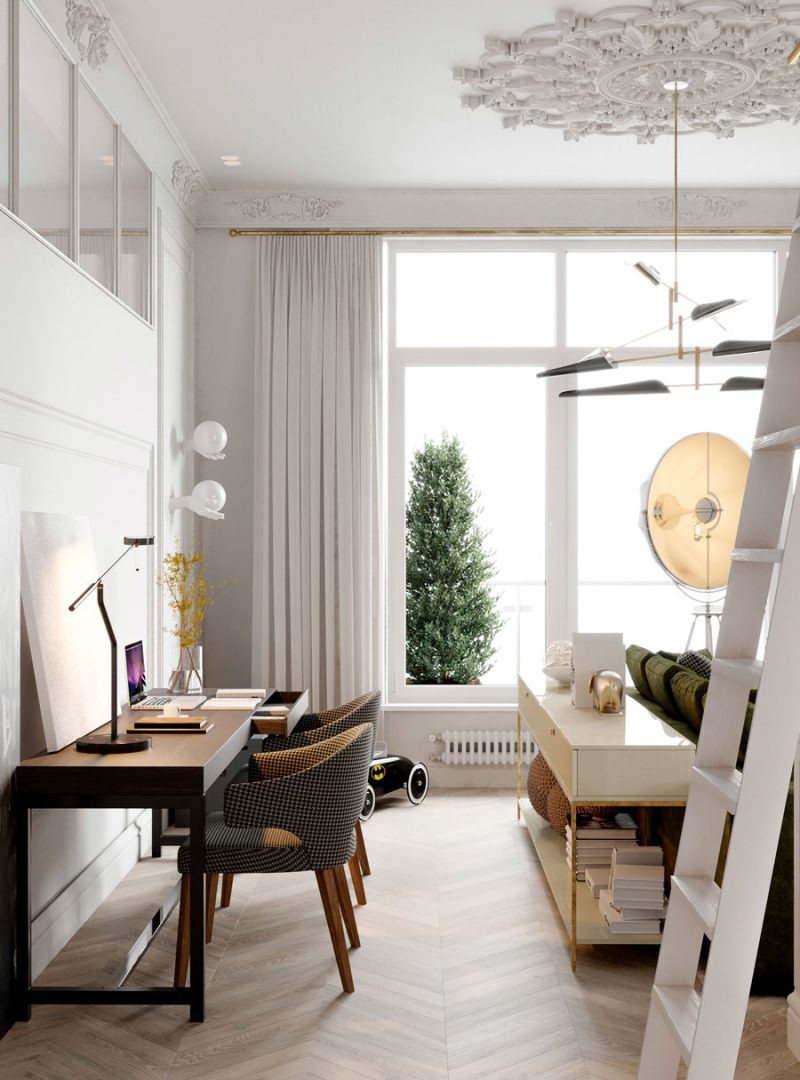 Egy kutyás család álma vált valóra ezzel az angolosra tervezett lakással. Londonból tértek haza Minszkbe, de szerették volna otthonukban megőrizni a stílust, hangulatot, amiben eddig éltek. Egy szép apartman nagy ablakokkal és szuper magas mennyezettel, 110 m2-en. Elég tágas, de sokkal nagyobbnak tűnik, mint valójában. A nyitott és rendkívül könnyed szép konyha, tágas étkezővel és egy hangulatos nappali szoba nincs zsúfoltan berendezve, a sok fény is a tágasságot növeli. Volt fix elem is a berendezésnél: rögzített falakkal, üvegfalakkal és ablakokkal rendelkezett, amin nem akartak változtatni.