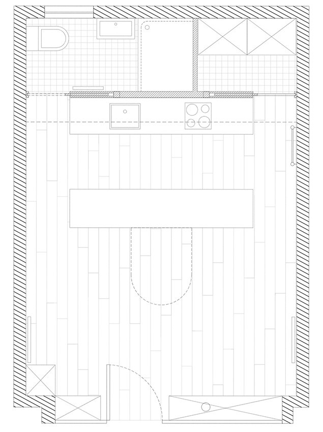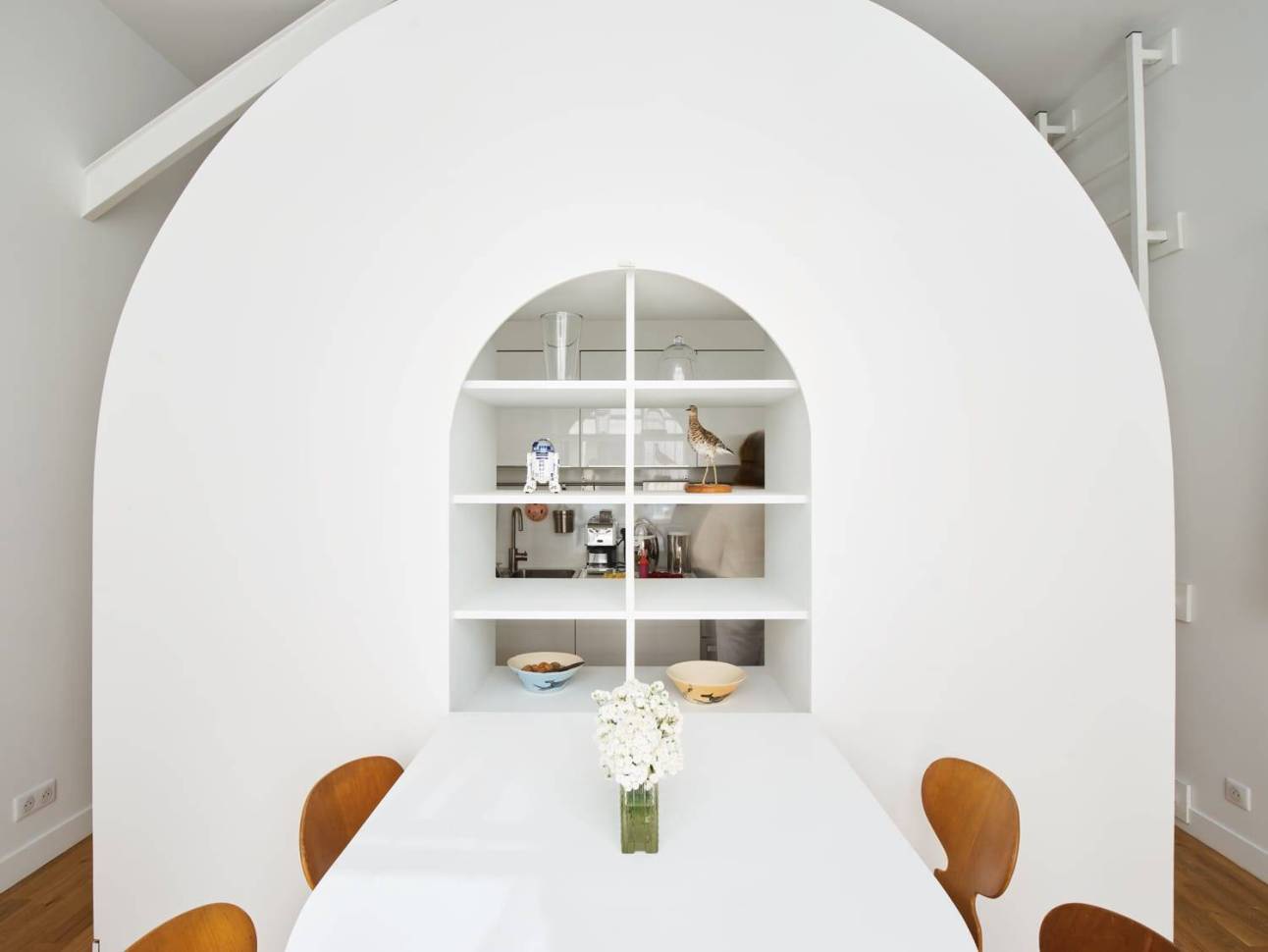 Párizs 13. kerületében található ez az egyedülálló kis lakás amit a Freaks Architecture tervezett. A nevét ("La Tournette") a középső forgatható és rendkívül sokoldalú egységről kapta, ami tagolja a tereket a 30 m2-s helyiségben és egyben könyvtárként és étkezőként is funkcionál. A praktikusan és okosan megtervezett magasított ágy egészíti ki a berendezést, ami alatt a fürdőszobát is kialakították. Ez a kompakt berendezés szinte elfeledteti velünk, hogy milyen kicsi lakásban vagyunk. Minden funkciónak megvan a jól megtervezett helye, ami megkönnyíti a lakás napszakonként változó használatát, beengedi a természetes fényt és tágítja a teret.