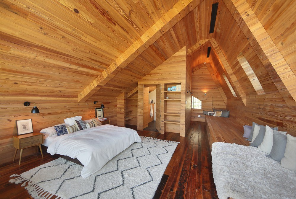 A hatalmas belmagasság ellenére kellemes otthon ez. Bár az ilyen eltúlzott méretű terek, akár a nappaliról, akár a hálóról van szó, nem feltétlenül segítik az otthonosság érzetének kialakulását. Modern stílus, a tágas terek miatt, szinte eltörpülő bútorzat, világosság, sok fény jellemzi.