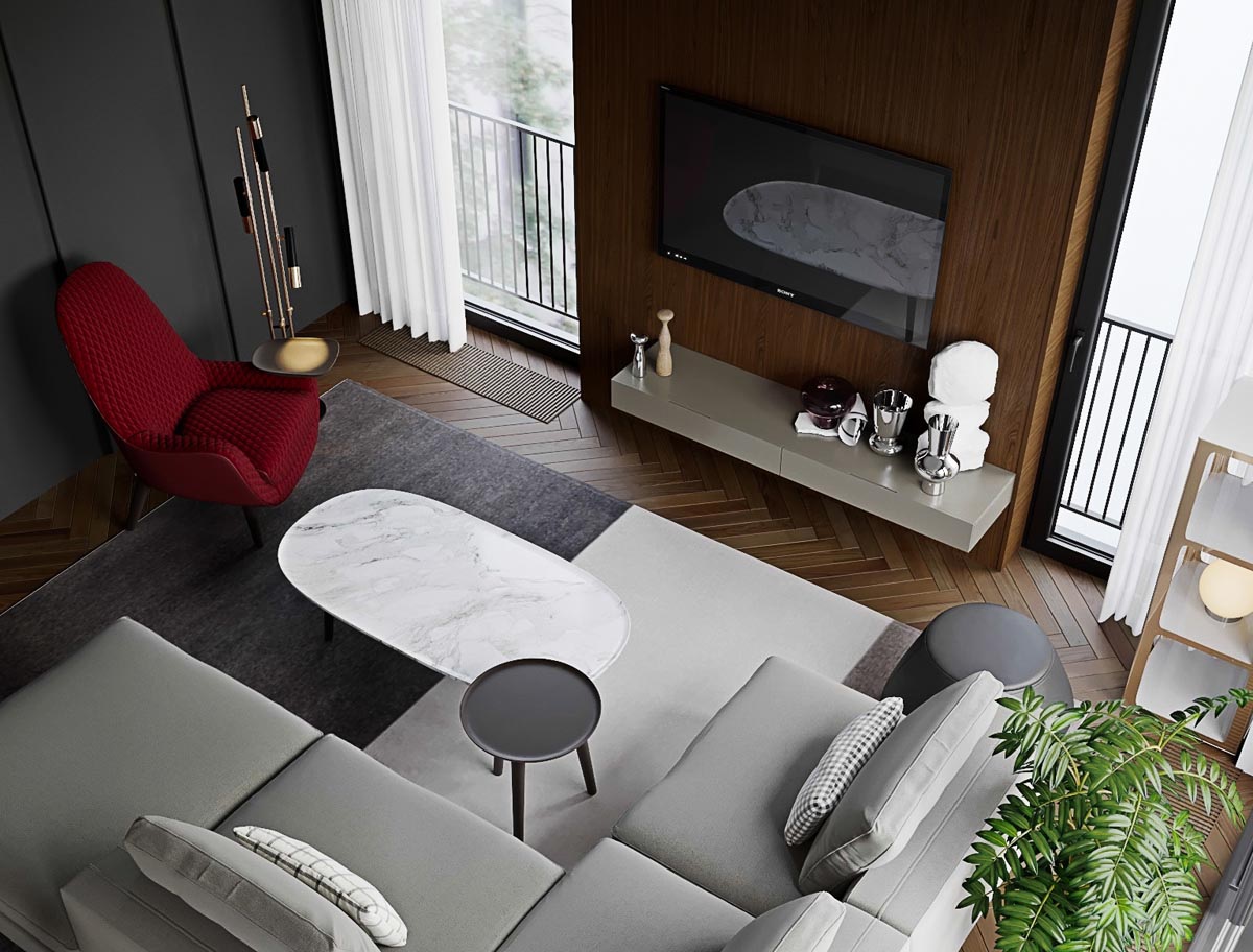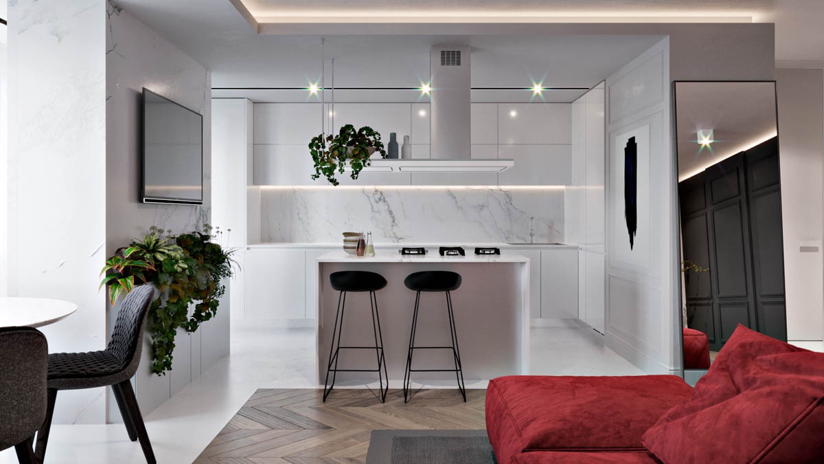 A három, lenyűgöző, vörös és szürke harmóniával rendelkező modern lakás egy csomó ízléses és klasszikus elemet tartalmaz. Kortárs vörös bútorokkal, melyek a merészek és nagyon magabiztosak számára készültek. Nézze meg a színes, összehangolt, modern művészetet, a tágas nyílt tereket, a tökéletes formát, a nemesfémes elemeket, a luxus otthoni világítástechnikai megoldásokat. Ezen otthonok szobáiban izgalmas luxus anyag a márvány képviseli a trendet. A márvány borítású bútorok megtalálhatók a kifinomult társalgókban és étkezőben, a márványburkolatú padlón és a gyönyörű fürdőszobákban, konyhákban.