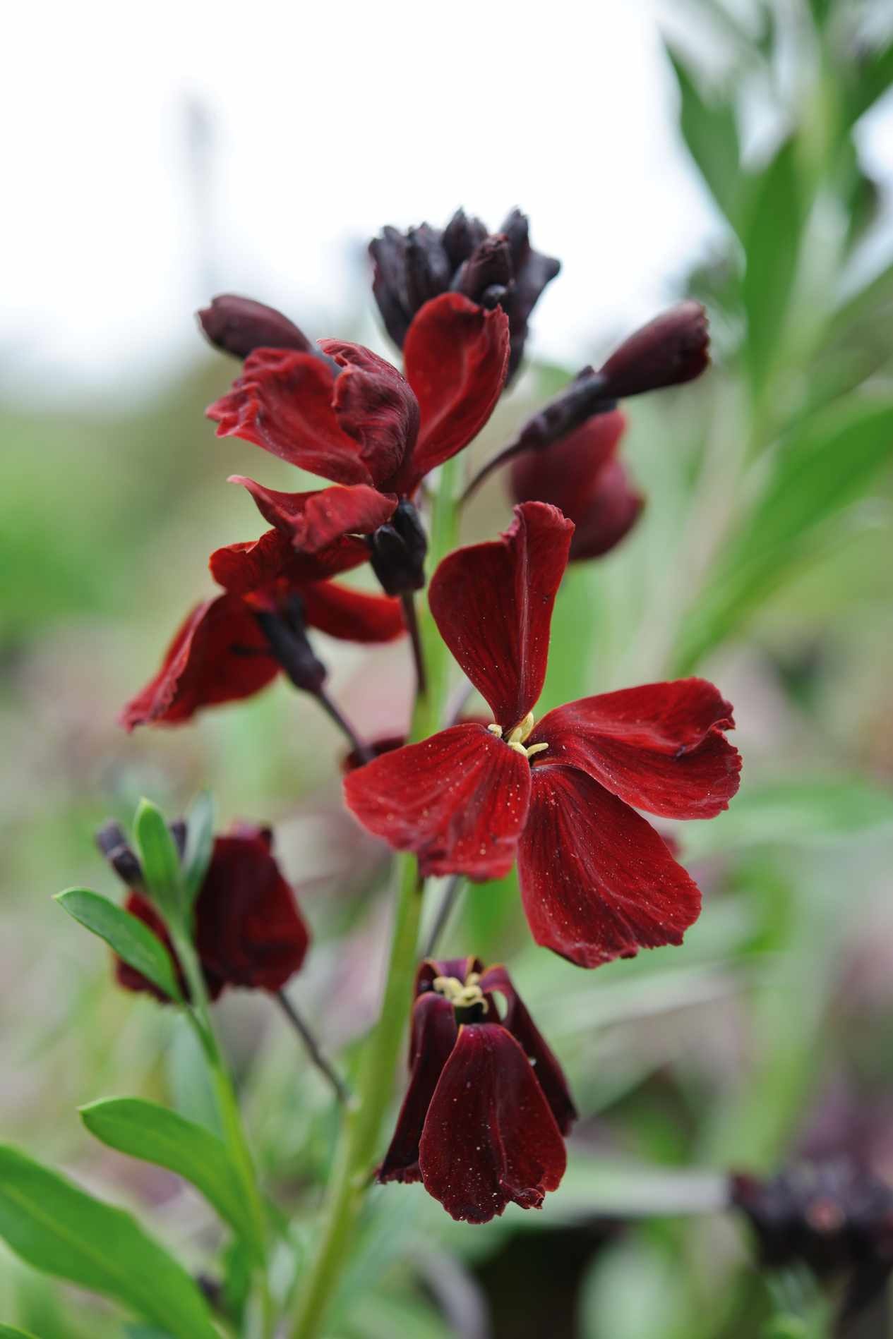 Sorrendben a következő növények láthatók a képeken: Salix daphnoides, Erysimum cheiri ‘Blood Red’, Akebia longeracemosa, Cornus alba ‘Kesselringii', Pennisetum alopecuroides ‘Black Beauty’, Dahlia ‘Black Jack’, Helleborus atrorubens, Anthriscus sylvestris ‘Ravenswing’, Pennisetum alopecuroides ‘Dark Desire’, Saxifraga ‘Silver Velvet’, Tulipa ‘Black Hero’, Allium atropurpureum.