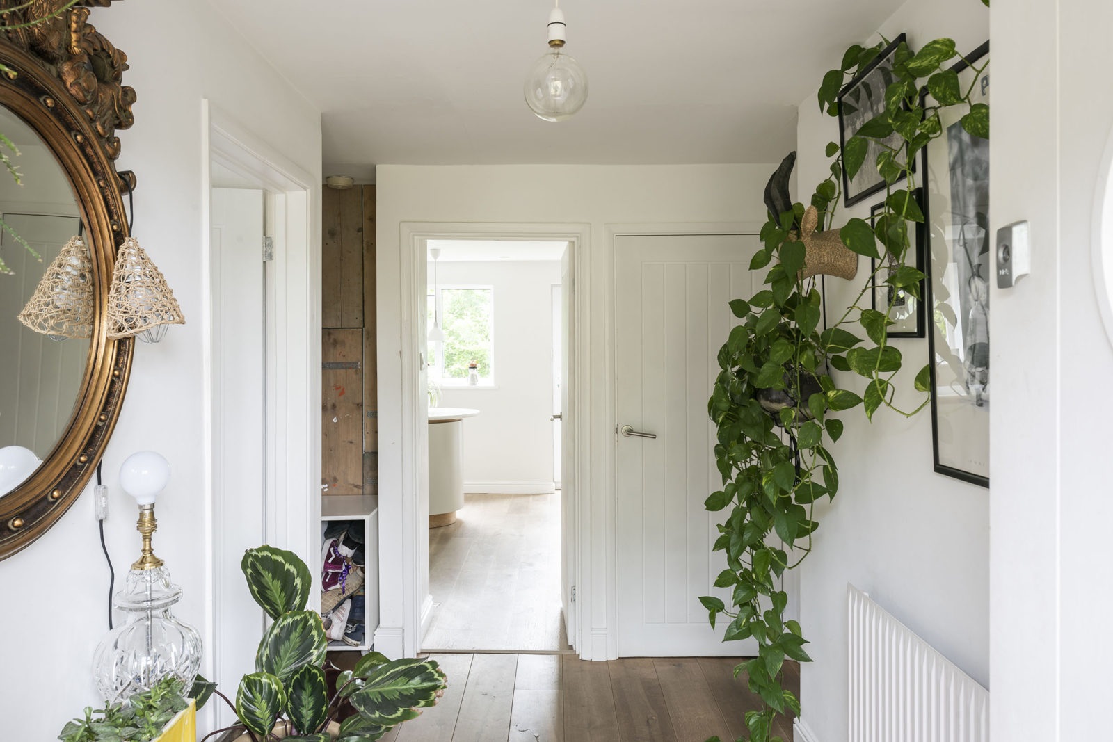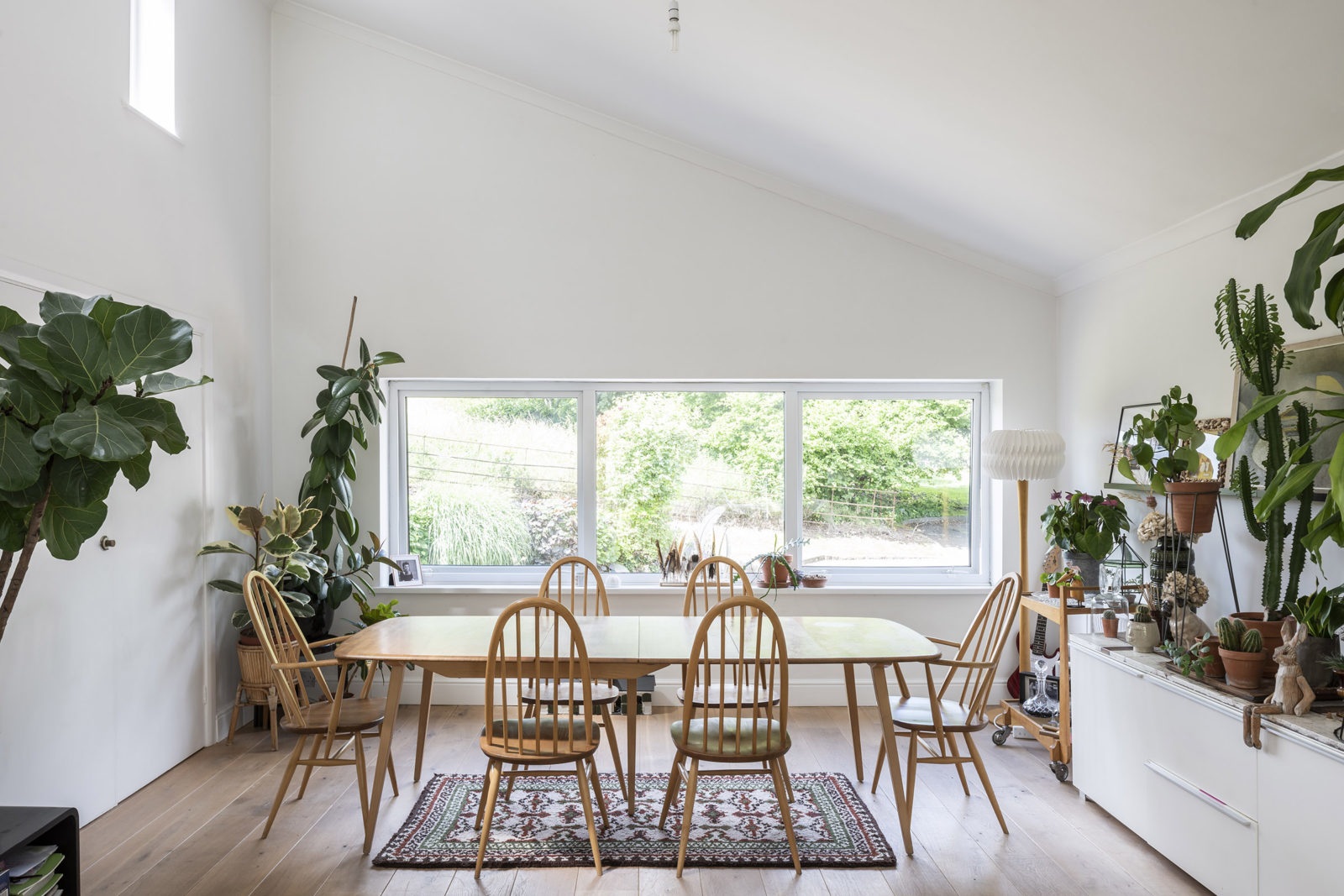 A nagy, világos terekkel, magas mennyezettel és a profi módon megtervezett konyhával, ez az angol ház nem elavult. A konyha ives berendezése különlegesség. Sokkal kortársabbnak tűnik, mint az 1972-es építés éve sugallja. Ez a közel ötven éves ház széles kilátással rendelkezik egy gyönyörű kertben. A hatalmas nappali kétségkívül középpontja, erőssége, a berendezés kedves, barátságos, semleges, igazán nem a különleges látványra hajt, inkább otthonosságra. Feltűnően sok zöld növény a fehér falakhoz illeszkedő kontrasztot nyújt.