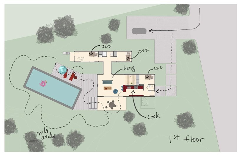 A nagy ablakok és üvegezett ajtók kellemes beltéri / kültéri lakókörnyezetet teremtenek, a konténerek külsejét feketére festették, hogy a ház jobban beépülhessen a természetes környezetbe. Ez az otthon megegyezik a környékbeli otthonok méretével.