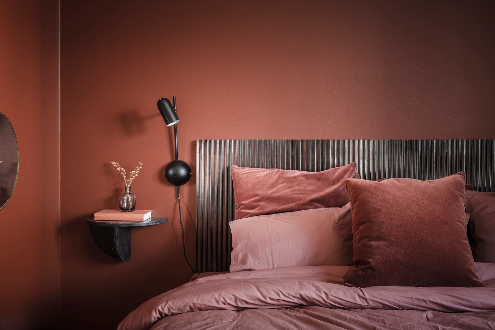 Ez a svéd lakás két érdekes elemet mutat fel: egy félig nyitott konyhát, amely ideális azok számára, akik szeretnék elrejteni a konyha bizonyos részeit, viszont nem szeretnék elszigetelni magukat teljesen a nappaliban történő eseményektől; valamint a melegséget adó színeit. A falakon és a bútorszöveteken, textíliákon visszatérő bordó, vörös okker, terrakotta és burgundi árnyalatok különleges mélységet és melegséget adnak a lakásnak, amelyeket a fehér részletek még inkább kiemelnek.