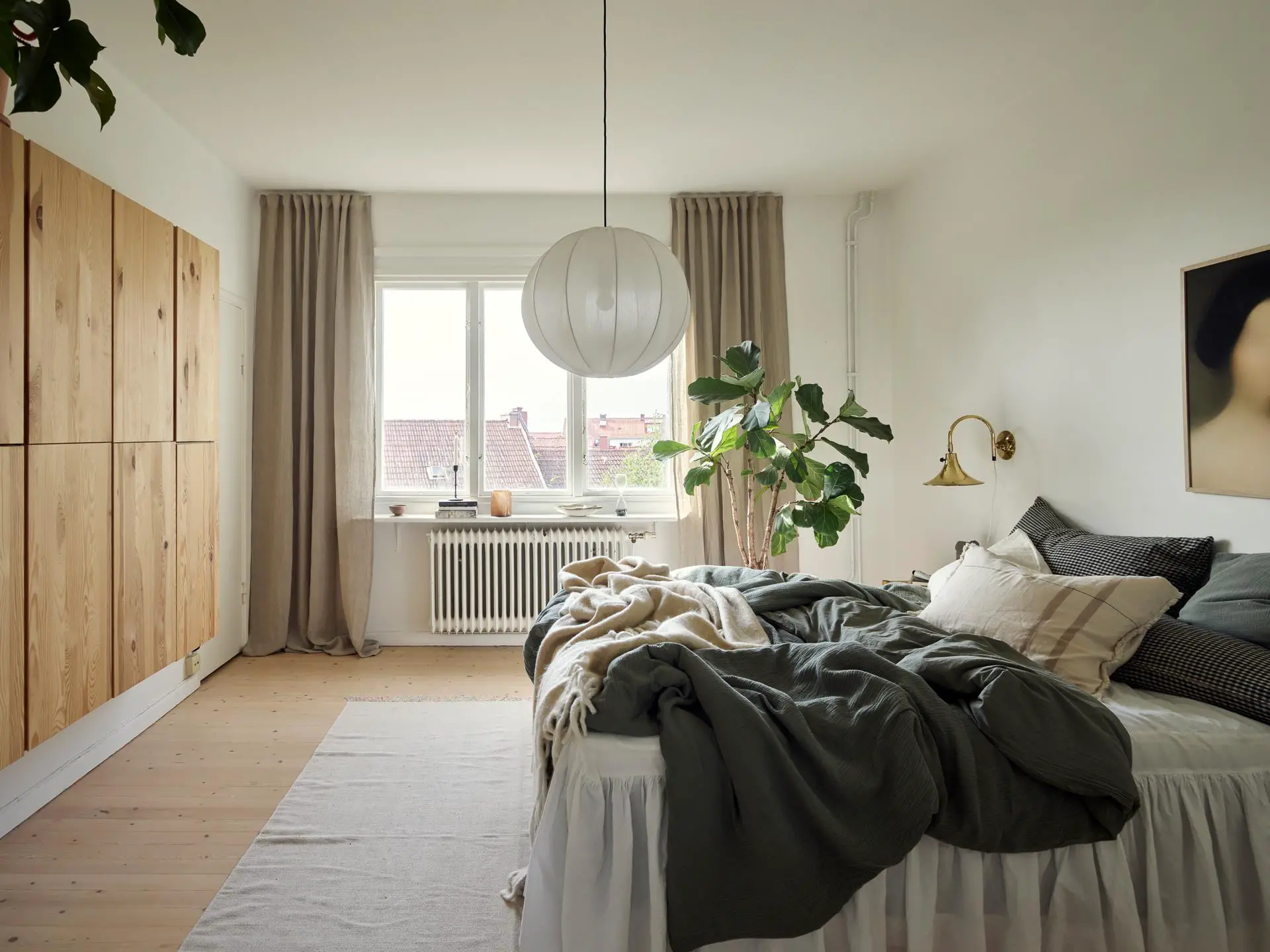 A világos fapadló és a látszó gerendák a vidéki nyaralók megjelenését kölcsönzik az otthonnak. Az erkélyszerűen nyíló ablakokból a városi tetők látványa azonban emlékeztet rá, hogy városi környezetben vagyunk. A minőségi belsőépítészet a titka annak a hangulatnak, amit ez a belső tér kínál.