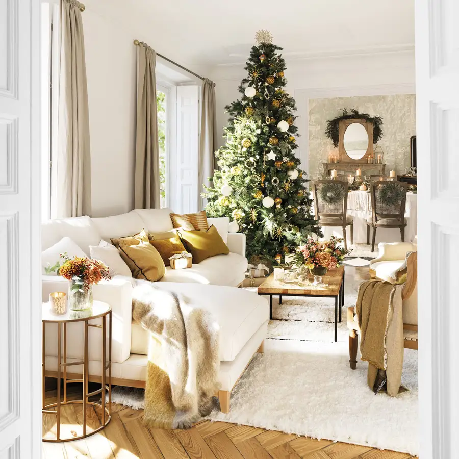 Az arany és a fehér párosa nemcsak melegséget ad a karácsonynak, de elagánssá időtlenné és ragyogóvá teszi az ünnepet. Ráadásul remekül illik a fehér enteriőrökhöz. A tündöklő varázslatot kiegészíthetjük gyertyafénnyel, mécsesekkel és persze illatos örökzöldekkel, bogyós növényekkel.