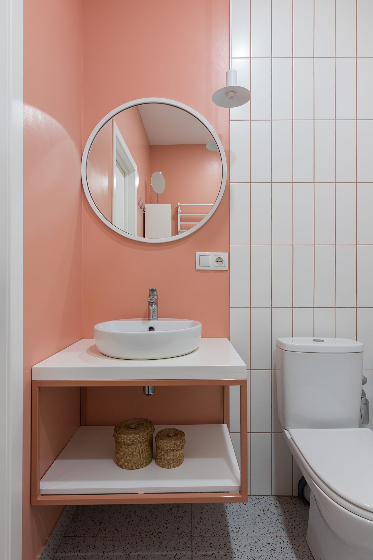 A növénymintás tapéta egyszerű eszköz ahhoz, hogy egyedivé tegye ezt a 38 m²-es lakást. A tulajdonos kérésére döntöttek mellette, aki sok időt tölt egzotikus környezetben, és szerette volna, ha a trópusi hangulatot valamilyen módon a lakásában is élvezheti. A nappali helyett a hálószobára helyezték a fókuszt, ami talán nem mindenki számára ideális választás, de érdekes koncepció azok számára, akik sokat utaznak és kényelmes otthont keresnek egy nagy városban. A nagy konyha tagadhatatlan előnye az ingatlannak, ami szépen illeszkedik a nőies pasztell színekhez. Ötletes az étkezőként funkcionáló beugró, ahol egy kényelmes ülőrészt alakítottak ki.
