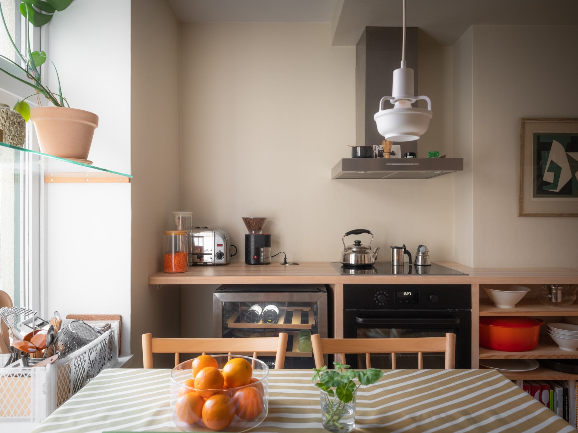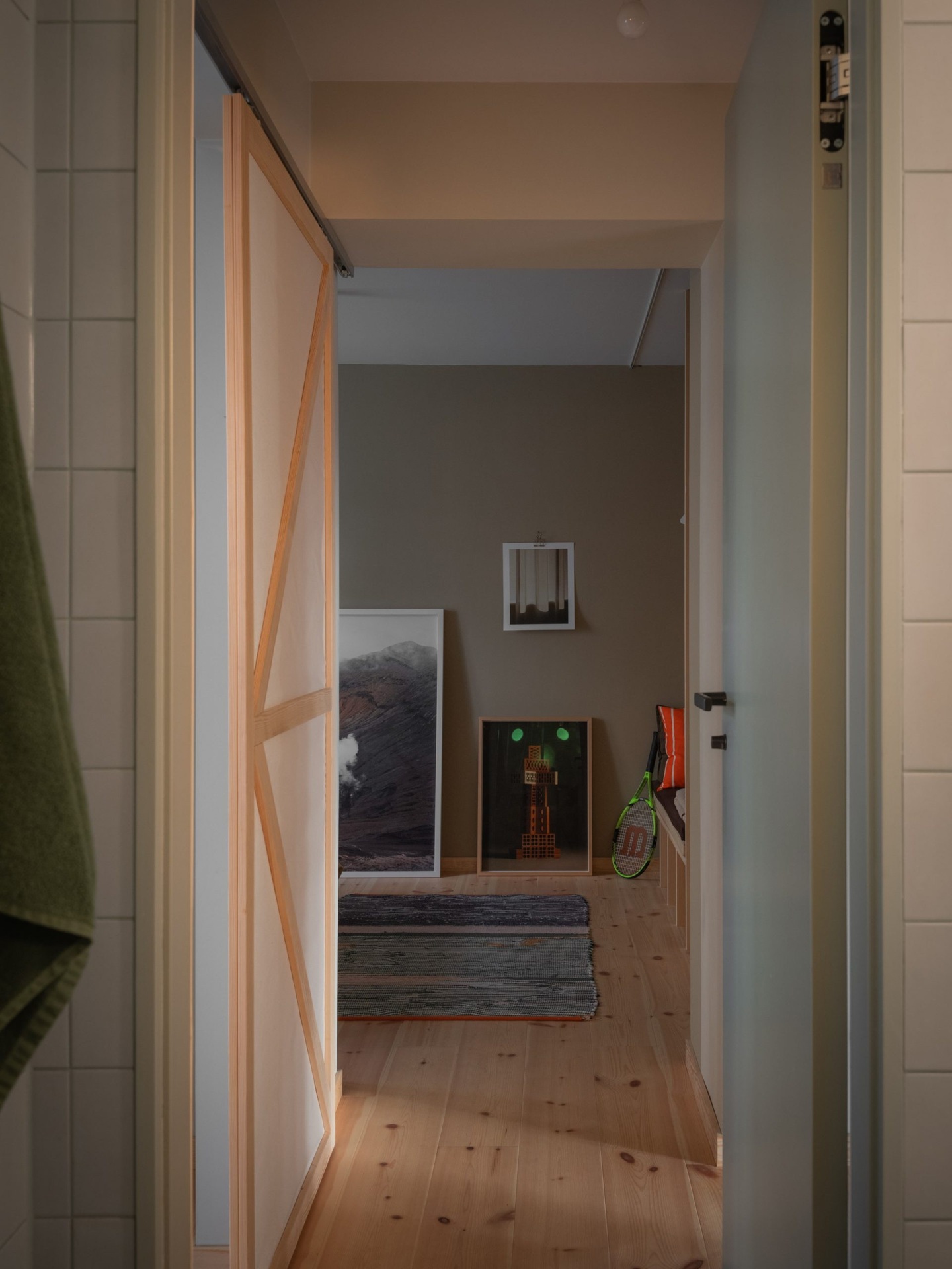 Egy svéd designer a jelenlegi tulajdonosa ennek a két hálószobás, 60 m²-es lakásnak, amelyet egy 1915-ben épült házban találunk. A tulajdonos hölgy egyedülálló, színes belső teret hozott létre tele érdekes részletekkel és egyedi készítésű bútorokkal, mint például a nappaliban található polcrendszer. A bútordarab tömör lucfenyőből, mobil polcokkal készült, a padlótól a mennyezetig. A polcrendszer két hőkezelt üveglapot és a televíziónak egy eltávolítható, beépített padot tartalmaz. Szintén saját tervezésűek a hálószobákat elzáró fa tolóajtók. A lakásban alapvetően a világos színek uralkodnak, amelyek vidámságot és tavaszias üdeséget csempésznek a terekbe az élénk piros és narancs színeikkel.