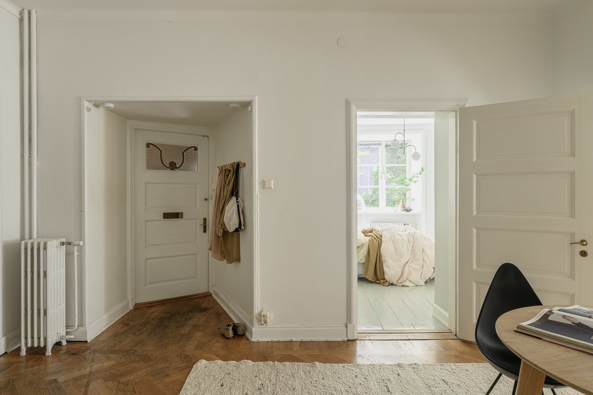 Ez a 135 m²-es, 1920-as évekbeli lakás a múlt báját és a modern kényelmet ötvözi. A tágas, fényárban úszó terekben a halszálka parketta, finom rozetta díszítések, magas falpárkányok és antik ajtók mesélnek a múlt század hangulatáról. A nappali a lakás szíve, míg a konyha részben megőrzött, eredeti bútorai modern elemekkel egészülnek ki egyedi atmoszférát teremtve. A hálószobák és fürdőszobák harmonikus, lágy és semleges árnyalatokkal követik a skandináv stílust, ami egyensúlyban tartja a lakás történelmi jegyeit és a modern berendezést.