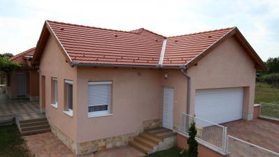 Hagyományos megjelenésű lakóház cserepeslemez tetővel