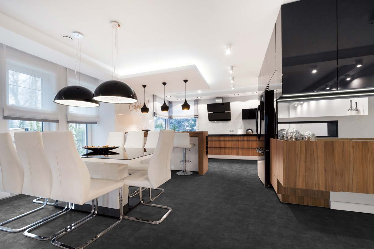 Számos kiváló tulajdonsága mellett a vinyl padlóburkolat egyedi és látványos megjelenést kölcsönöz a lakások, irodák, üzletek, éttermek belső tereinek.