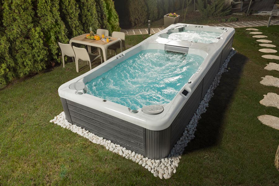 A prémium minőségű Swim Spa jakuzzi egyszerre kínál lehetőséget a nyugodt kikapcsolódásra és a frissítő testedzésre.